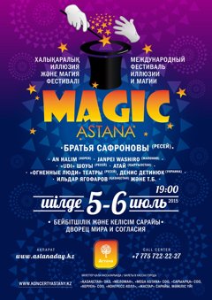 В Астане 5–6 июля 2015 года состоится II Международный фестиваль иллюзии и магии Magic Astana 2015. Прошлый год стал дебютным годом для этого фестиваля. В этом году Magic Astana вновь соберет под своими сводами ведущих иллюзионистов мира, смело претендуя на звание удивительного и высококлассного в своем роде фестиваля «чародеев и магов».