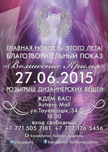 27 июня 2015 года в «Astana mall» состоится модный благотворительный вечер, который организован «Kazakhstan Fashion Academy» совместно с группой молодых дизайнеров Казахстана.