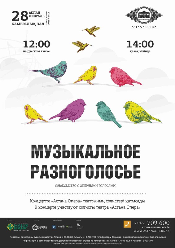 Ведущие концерта – музыковеды театра в занимательной форме расскажут о всех видах оперных голосов – от сопрано до баса, а известные солисты исполнят популярные арии и дуэты. В программе также примет участие хор детской театральной студии «Астана Опера».