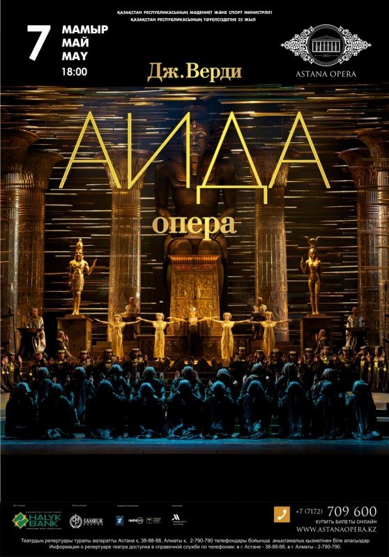 Опера «Аида» итальянского композитора Дж. Верди в постановке выдающегося режиссера и сценографа современности Франко Дзеффирелли (Ла Скала, Италия). Дирижер – Заслуженный деятель Казахстана Абзал Мухитдинов.