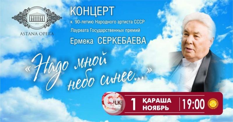 Народному артисту СССР легендарному певцу Ермеку Бекмухамедовичу Серкебаеву в 2016 году исполняется 90 лет. Этой знаменательной дате Государственный театр оперы и балета «Астана Опера» посвящает концерт «Надо мной небо синее…».