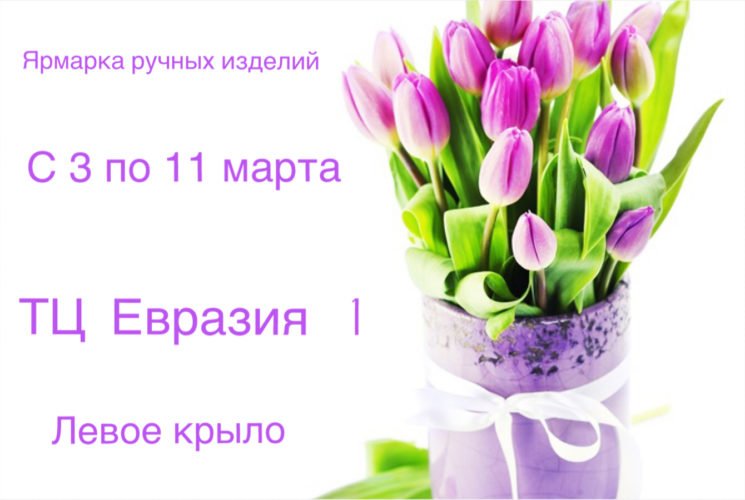 К весенним праздникам для посетительниц торгового центра «Евразия» будет работать ярмарка ручных изделий! Тут вы сможете приобрести украшения из натуральных камней и бисера, бантики и ободки, мыло, изделия из дерева, имбирные пряники, вязанные изделия, самаркандская посуда, изделия из акриловых бус, интерьерные куклы и многое другое.