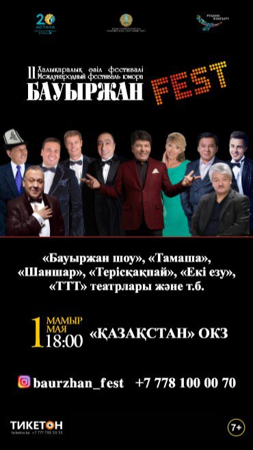 При поддержке Министерства культуры и спорта РК в рамках празднования 20-летия столицы Казахстана 1 мая 2018 года состоится II Международный фестиваль юмора «Бауыржан Fest».