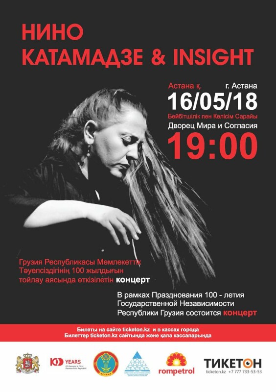 В рамках празднования 100-летия государственной независимости Республики Грузии, Посольство Грузии в Республике Казахстан и Почетный Консул Грузии в Республике Казахстан, Карагандинской Области господин Жанат Тусупбеков при поддержке Акимата г. Астаны проводит благотворительный концерт при участии известной грузинской исполнительницы джазового направления мировой музыки, композитора Нино Катамадзе и группа Insight, а также фотовыставка ландшафтов Грузии, грузинского культурного наследия и новейших архитектурных строений Грузии „Spectacular Georgia“.