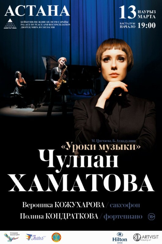 В ролях: Чулпан Хаматова, Вероника Кожухарова (саксофон) и Полина Кондраткова (фортепиано).