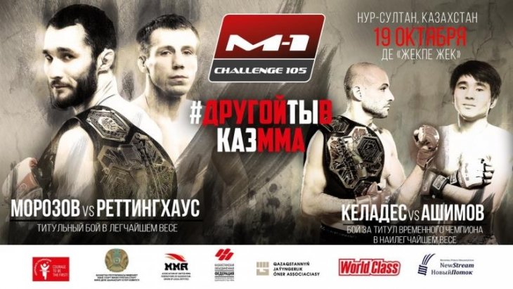 В главном бою вечера действующий чемпион M-1 Challenge в легчайшем весе Сергей Морозов (Казахстан), 15-4 будет защищать свой пояс против не знающего поражений в рейдже Джоша Реттингхауса (США), 16-4.