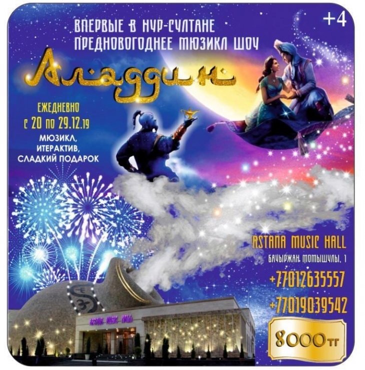 С 20 по 29 декабря приглашаем вас на сказочные новогодние представления - новогодний мюзикл "Алладин"!!!