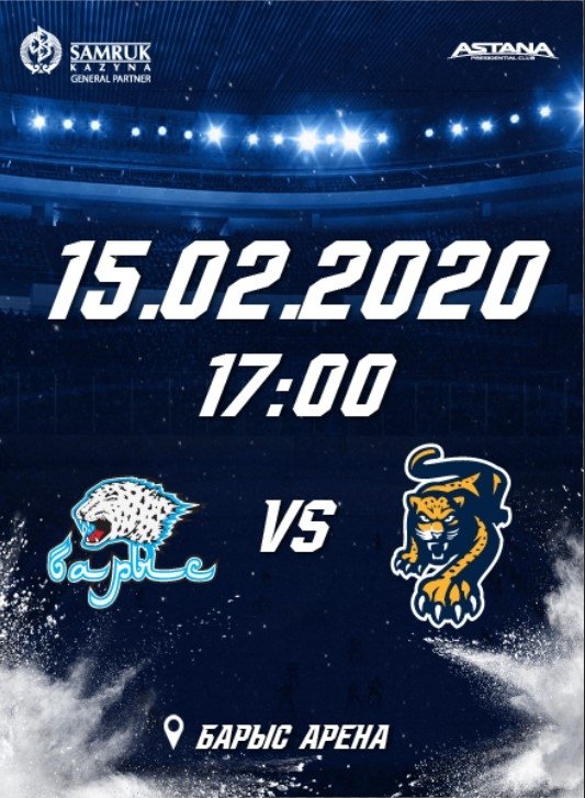 15 февраля в нашей столице состоится матч между командами Континентальной хоккейной лиги сезона 2019-2020 ХК «Барыс» с ХК «Сочи»!!!