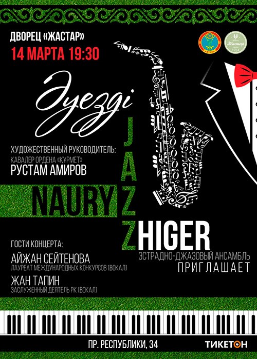 Дворец «Жастар» поздравляет всех казахстанцев с наступающим праздником Наурыз мейрамы, днём равноденствия, весны и обновления! Не случайно эту дату испокон веков называли «Ұлыстың Ұлы күні» – Великий день для народа. В честь предстоящего праздника яркую концертную программу «Әуезді JAZZ Nauryz» зрителям подарят артисты эстрадно-джазового ансамбля «Жiгер» Акимата г. Астана.