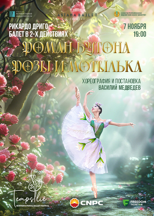 Балет «Роман бутона розы и мотылька» – это последнее творение Мариуса Петипа, которое так и не было поставлено на сцене больших театров. И вот спустя более века благодаря усилиям талантливых хореографов и юных артистов Казахская национальная академия хореографии воссоздала этот спектакль и представляет его на сцене одного из лучших театров балета.