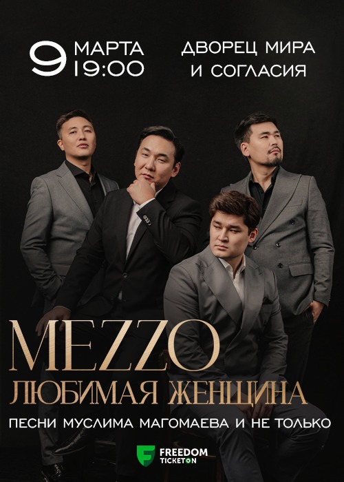 Группа Mezzo представляет новый концертный тур по Казахстану «Любимая женщина», вдохновленный весенним настроением и посвященный творчеству великого азербайджанского и советского певца и композитора Муслима Магомаева. В рамках программы прозвучат легендарные шлягеры мэтра, а также другие популярные композиции в уникальной авторской интерпретации солистов Mezzo.