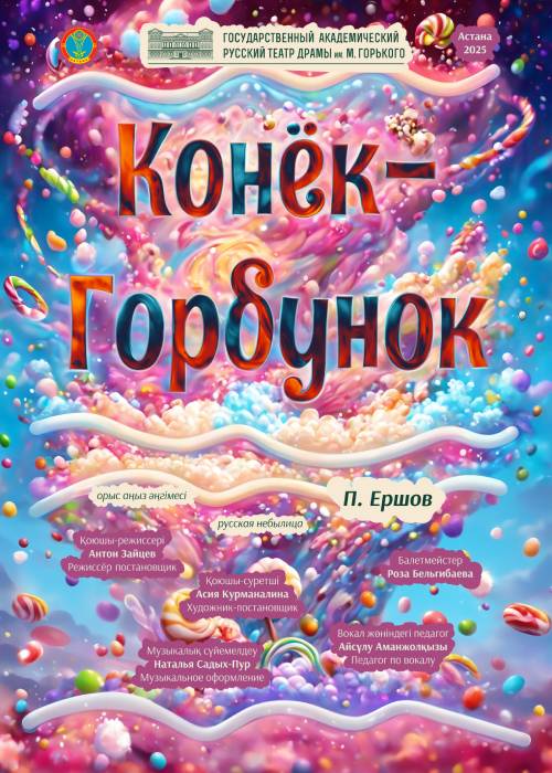 Спектакль «Конёк-Горбунок» по одноименной сказке Петра Ершова в постановке режиссера из Алматы Антона Зайцева – это яркая интерпретация известной истории о крестьянском сыне Иване и неказистом Коньке-Горбунке, пестрящая сочными красками, народными мотивами, в которую вплетены элементы театра кукол, клоунады, актерская импровизация. Зрителей ждут веселые скоморошьи шутки-прибаутки, ожившие деревья, говорящие животные, и самые невообразимые чудеса!
