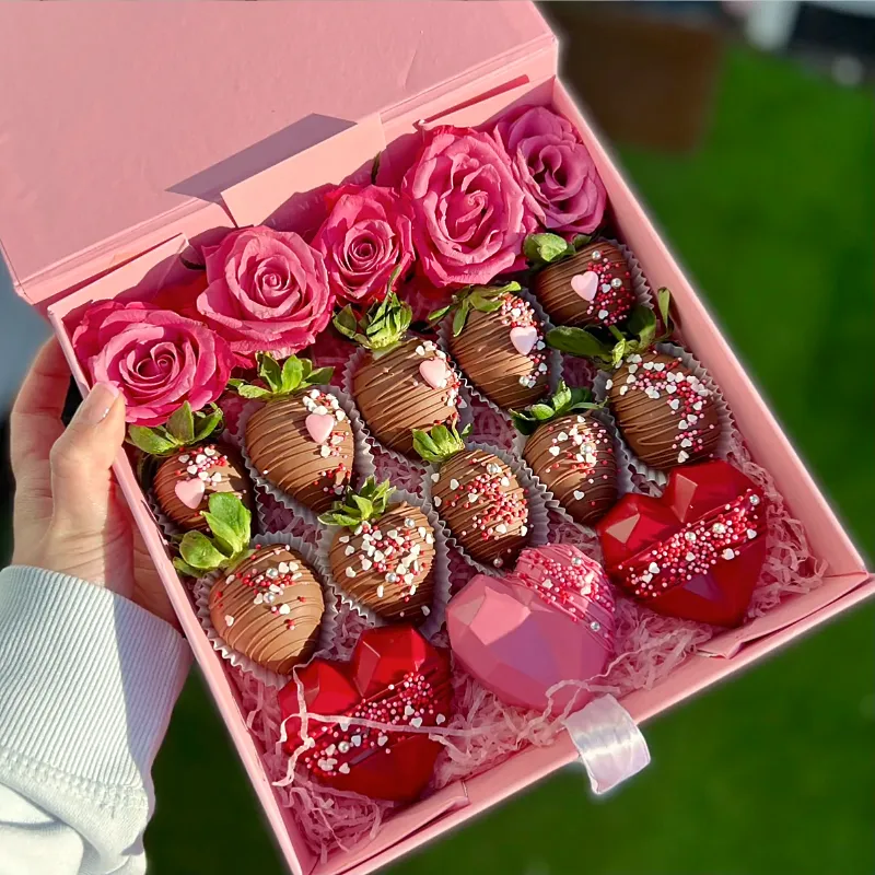 Кроме вкусовых и визуальных преимуществ, клубничные букеты радуют возможностью персонализации. Сегодня клиенты могут выбирать не только тип шоколада и декора, но и дополнить композицию надписями, поздравительными открытками, свечами или даже мини-подарками внутри упаковки. Также можно оформить букет в фирменных цветах компании или с символикой для корпоративного подарка.